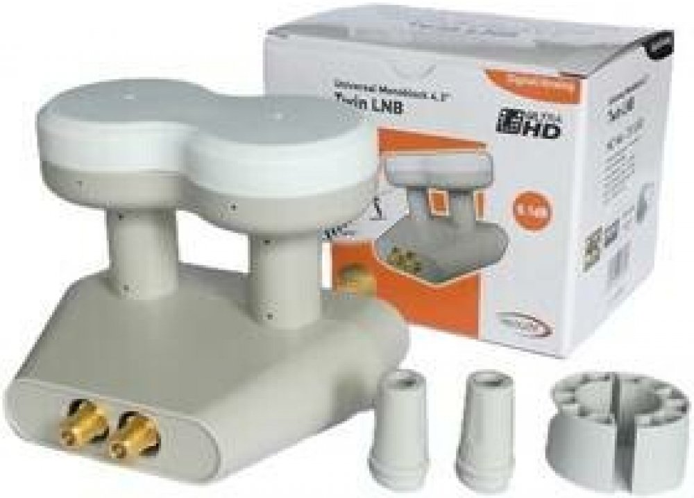Monoblock twin konvertor se šumovým číslem 0,1 dB je určený pro příjem ze dvou družic (ASTRA 19,2°E a ASTRA 23,5°E) a výstupem pro připojení dvou satelitních přijímačů. LNB se vyznačuje vysokým ziskem, malým odběrem a kvalitním provedením. Monoblok má plastový kryt s uzávěrem zlacených konektorů.