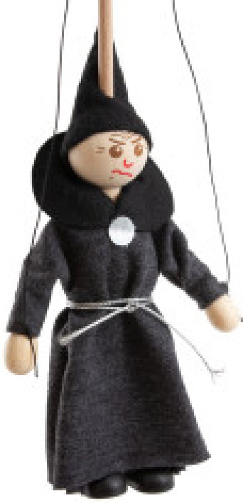Tento typ loutky lze velmi snadno ovládat - dřevěná tyčka s provázky a je to. Loutka měří 14cm, s vahadlem 26,5cm. Umí sedět, klečet, hýbat rukama, a tak se s nimi dá hrát skvělé divadlo. Zároveň jsou kompatib...