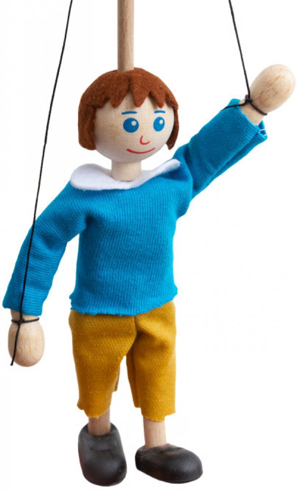 Tento typ loutky lze velmi snadno ovládat - dřevěná tyčka s provázky a je to. Loutka měří 14cm, s vahadlem 26,5cm. Umí sedět, klečet, hýbat rukama, a tak se s nimi dá hrát skvělé divadlo. Zároveň jsou kompatib...