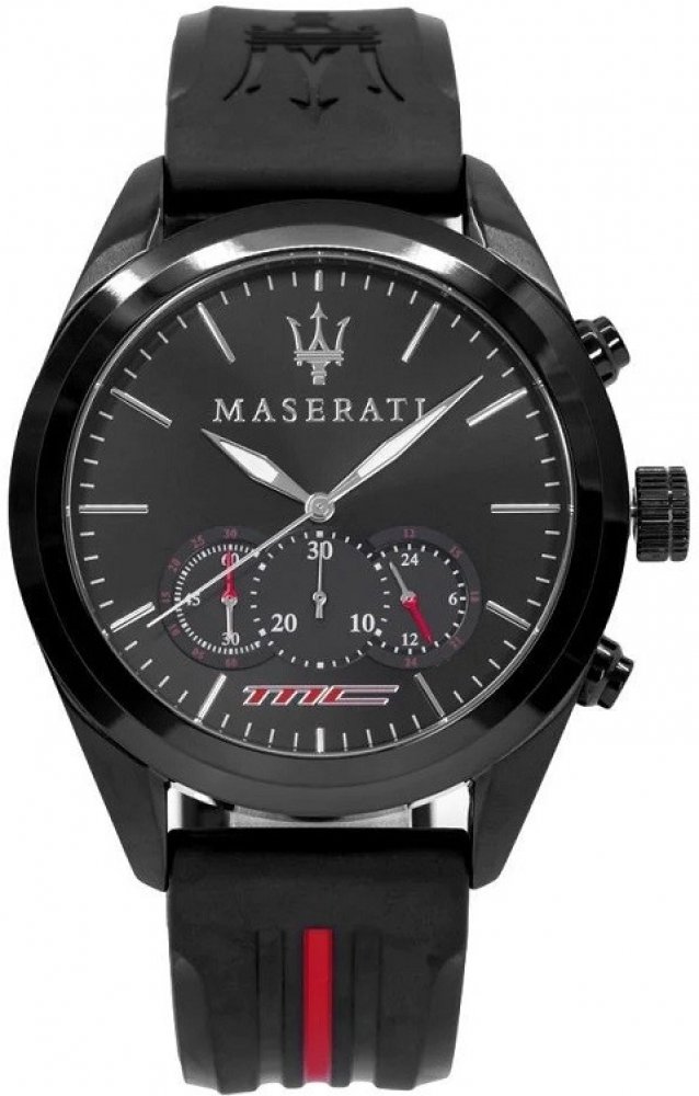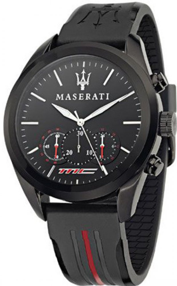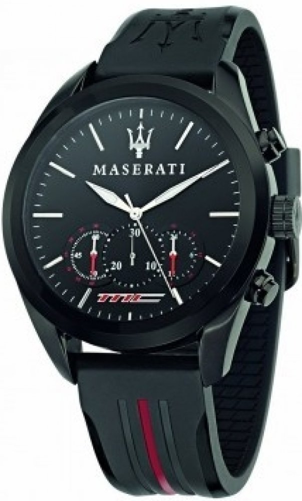Maserati analogové silikon sportovní pánské bateriové - quartz ocel 100 m bateriové 100 g minerální bez osazení Traguardo kulaté vícebarevná černá s luminiscencí 2.2 cm na ruku pruhované bez číslic 3 bez chytrých funkcí