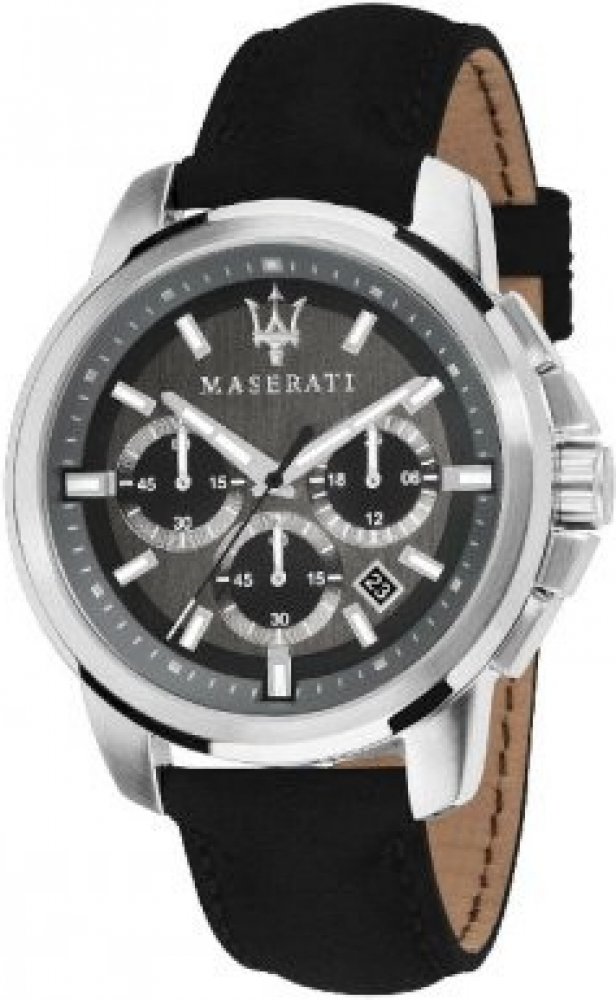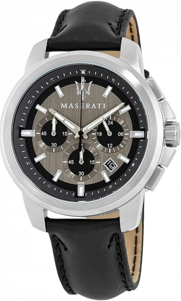 Maserati analogové kůže sportovní pánské bateriové - quartz pro běžné použití (30–50 m) 44.0 mm ocel 50 m bateriové 7 g minerální bez osazení Successo kulaté černá šedá s luminiscencí trnová spona 2 cm na ruku bez číslic stříbrná ocel 4.4 cm střední 1 s dočasným svícením (luminiscence/LED) s nenáročnou údržbou (quartz) bez chytrých funkcí