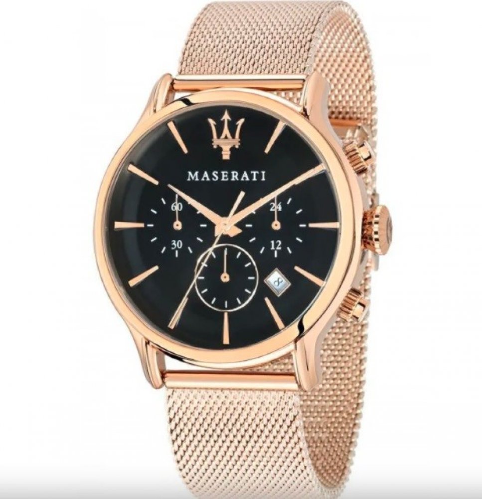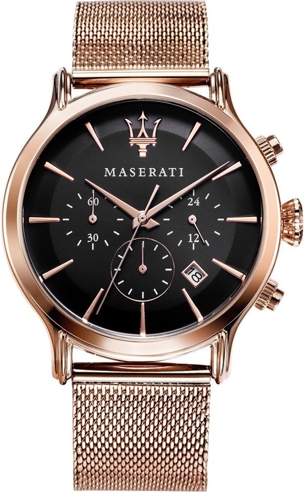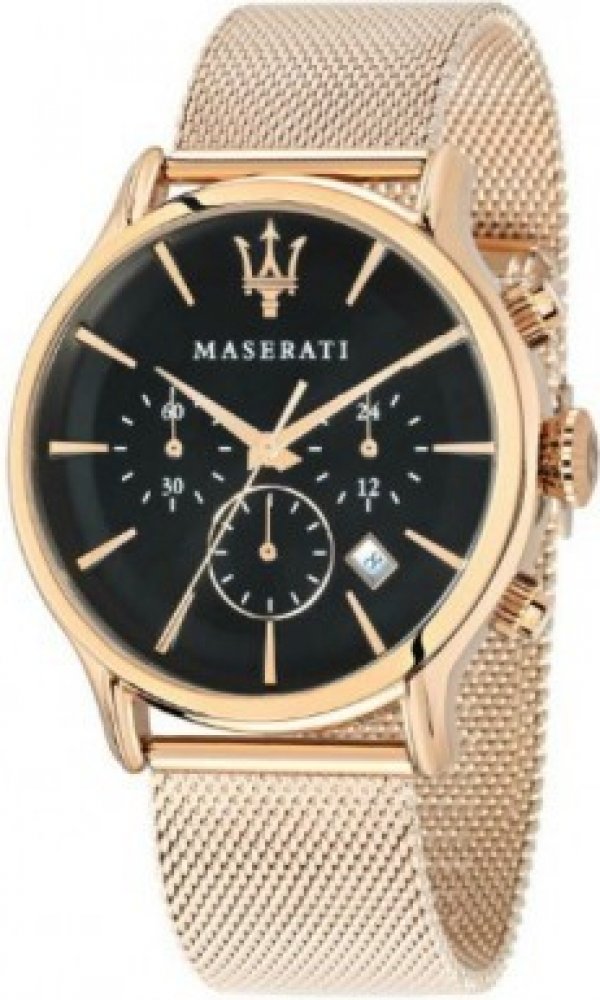 Maserati analogové ocel elegantní pánské bateriové - quartz ocel 100 m bateriové 90 g minerální bez osazení Epoca kulaté zlatá černá posuvná spona 2.1 cm na ruku bez číslic zlatá ocel pevná ocel 3 bez chytrých funkcí
