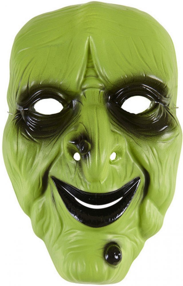 Plastová zelená maska čarodějnice se kterou můžete přijít na karneval, na Halloween, nebo na den pálení čarodějnic. Autentičnost dodávají masce kruhy pod očima a bradavice.
