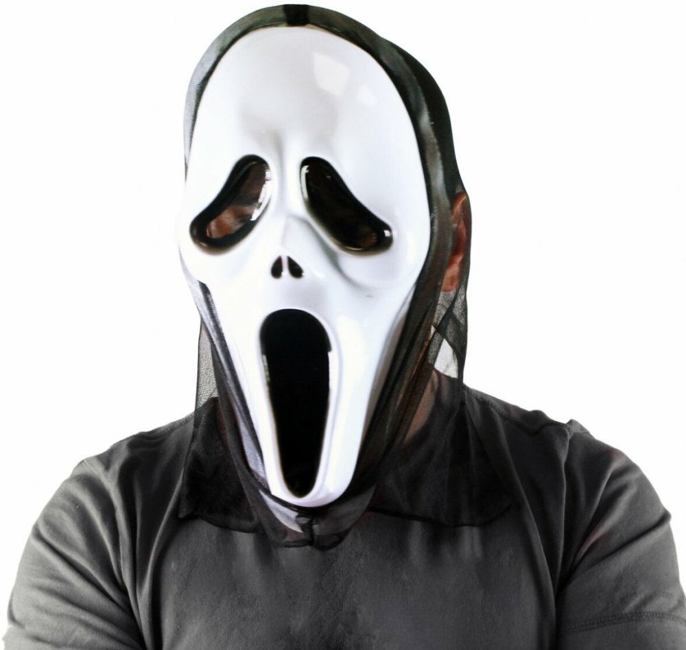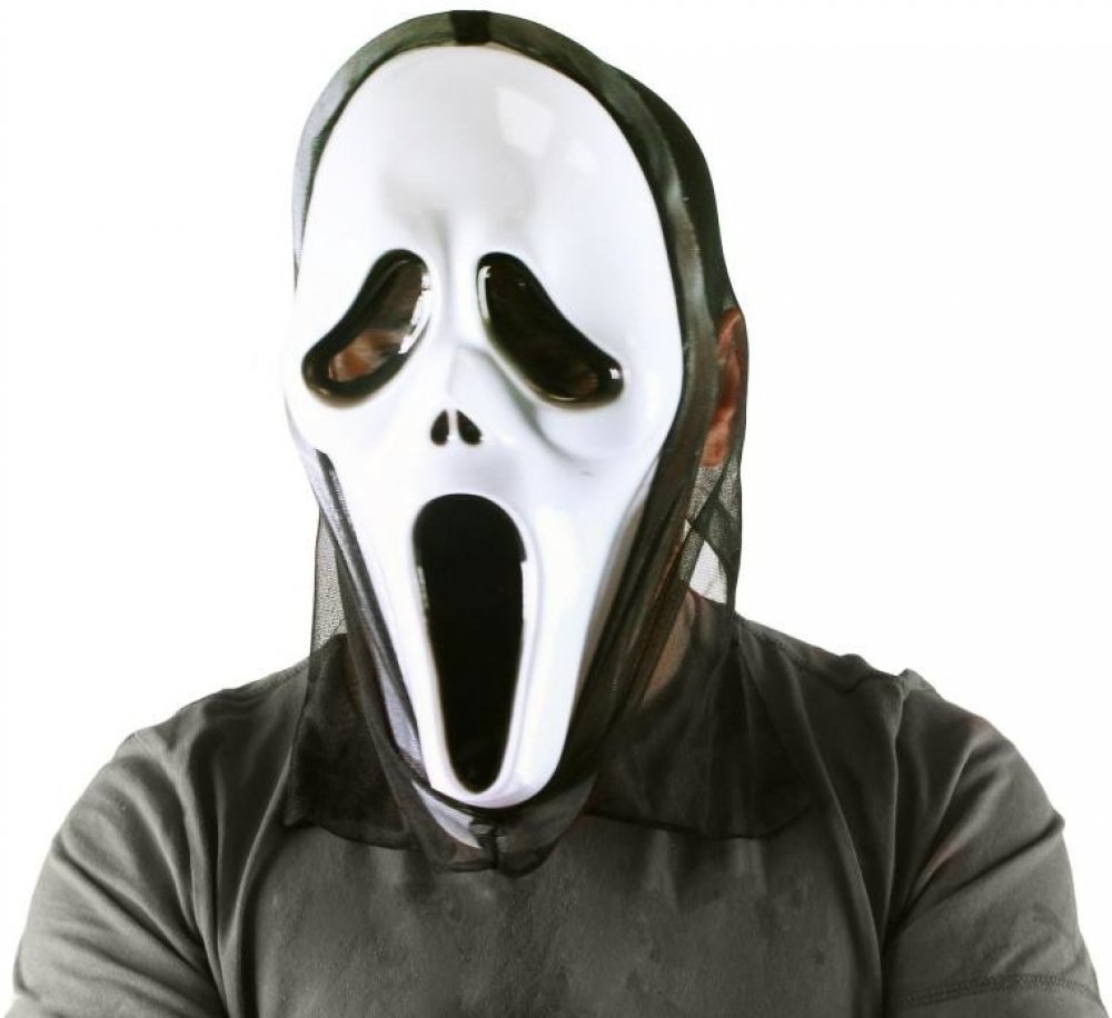 Parádní maska ve stylu ducha s šátkem je perfektním doplňkem na halloweenskou párty nebo karneval. Vystraš své kamarády touto hrozivou maskou a zažij spoustu legrace. motiv: duch vřískot barva: černo-bílá
