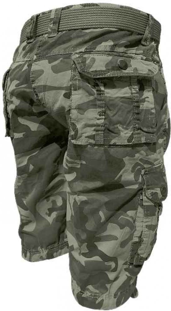 specifikace: zajímavé maskáčové kraťasy z příjemného bavlněného materiálu, na kterých oceníte množství předních, zadních, bočních kapes s nýty, knoflíky a plátěný opasek, pevný pás s poutky na opasek, ve spodní části nohavic utahovací šňůrky, vhodné na léto na běžné nošení a na volnočasové aktivity, lze je kombinovat s tričky, mikinami, polokošile, prát při teplotě do 30 ° C