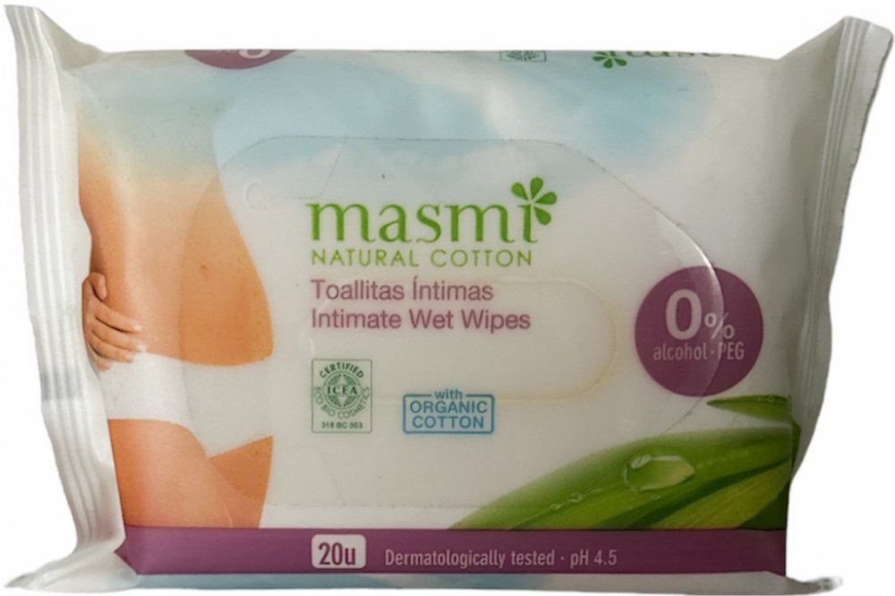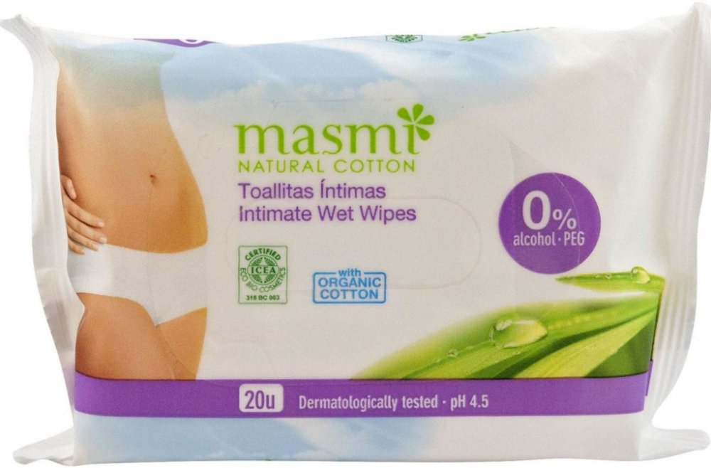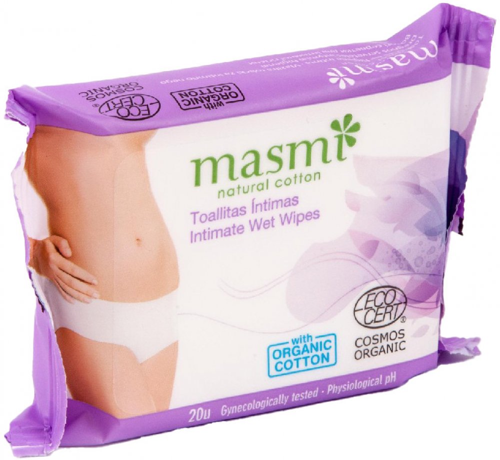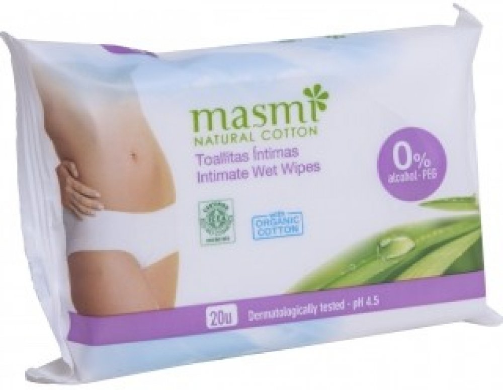 ámské intimní ubrousky Masmi jsou vyrobené z příjemné biobavlny. Nejsou bělené chlórem, neobsahují žádnou syntetickou parfemaci a jsou hypoalergenní.Riziko podráždění citlivých partií je tedy minimální. Ubrousky můžete využívat každý den, ale nejvíce je oceníte během menstruace, kdy máte zvýšené nároky na hygienu.