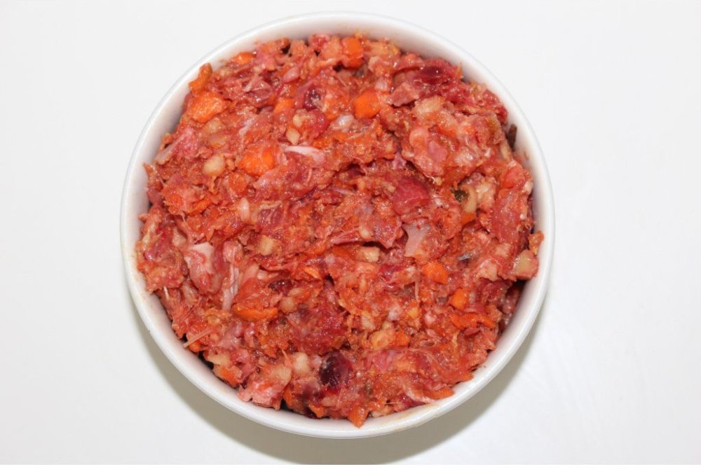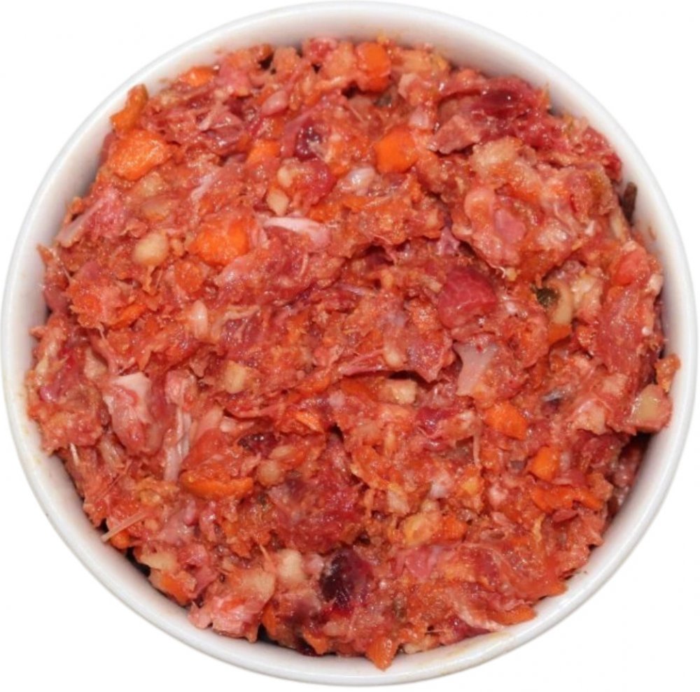 Vitamínově velice povedený a vyvážený mix hovězího ořezu, krůtího skeletu, zelenina a lososa, které jsou zdrojem minerálů a vitamínu, které Váš pes či kočka k životu potřebuje.