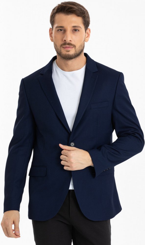 Elegantní pánská bunda v krásné barvě vyrobená z kvalitní látky s jemným vzorem. Bunda má široké, otevřené klopy, snížený střed a dva rozparky vzadu.