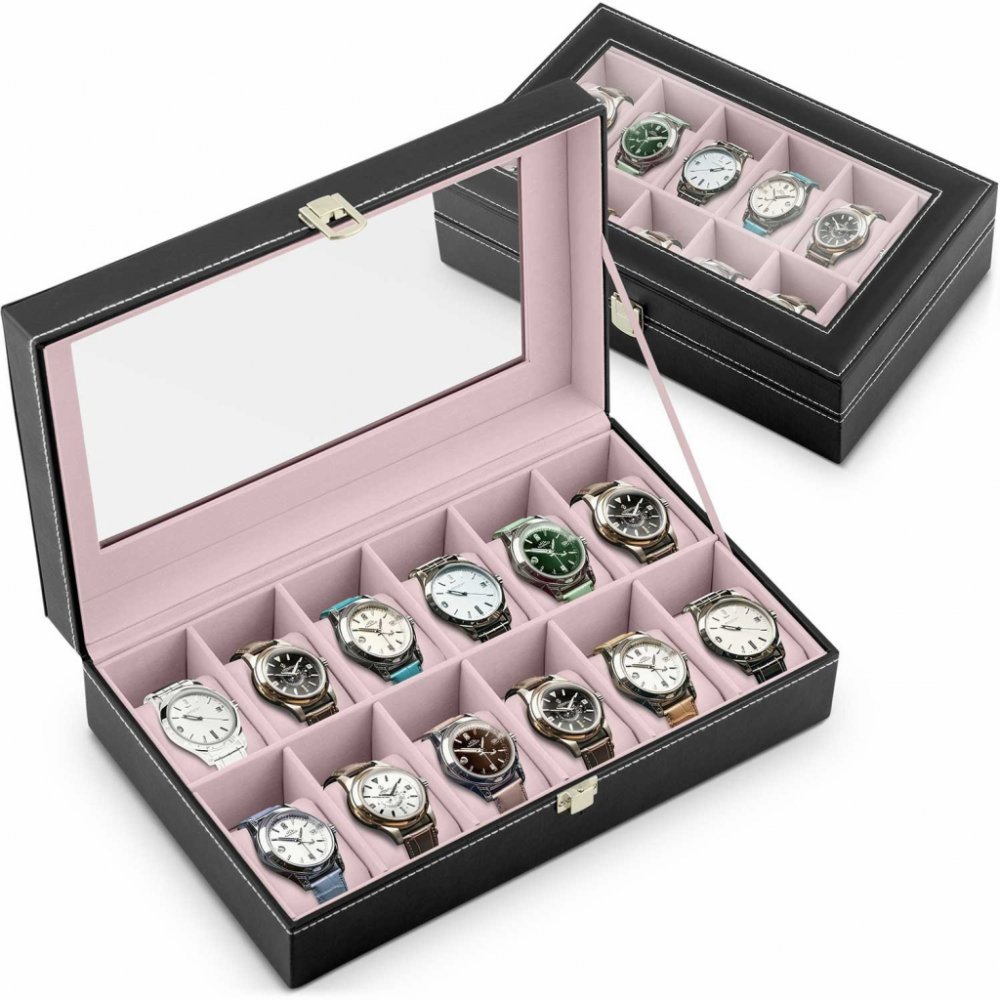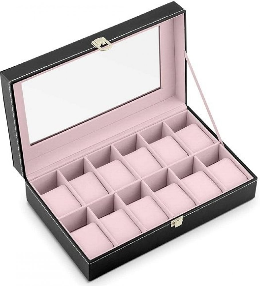 - 12 přihrádek pro uspořádání hodinek (každá o rozměrech 9 cm x 5 cm x 4,5 cm)