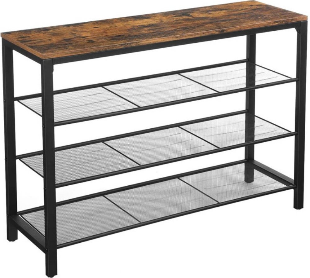 Myslíte si, že černá a hnědá mají potíže se sladěním? Možná ne! Matný černý ocelový rám a rustikálně hnědý povrch tohoto organizéru obuvi dokonale harmonizují. Umístěte 5 párů bot nebo jiných předmětů na stabilní síťové police, které pojmou každá až 5 kg.