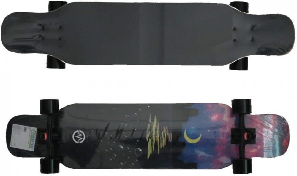 Longboard MASTER 42" dancing style je vyroben z osmivrstvého javorového dřeva o rozměrech 107 cm x 24 cm. Longboard MASTER dancing style díky svému prohnutí desky umožňuje jednoduše provádět triky. Je určen pro začátečníky a středně pokročilé jezdce o hmotnosti do 180 kg. Technická data: