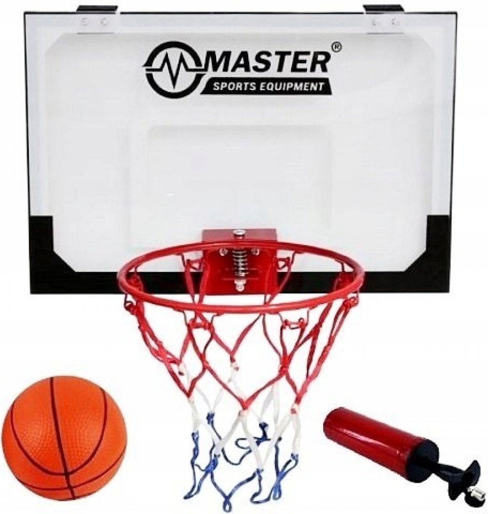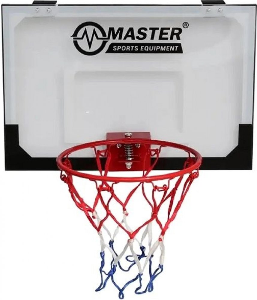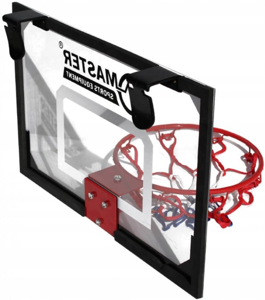 Basketbalový koš s deskou MASTER 45 x 30 cm - rekreační basketbalový koš s plastovou deskou a ocelovou obroučkou, vhodný k montáži na dveře.