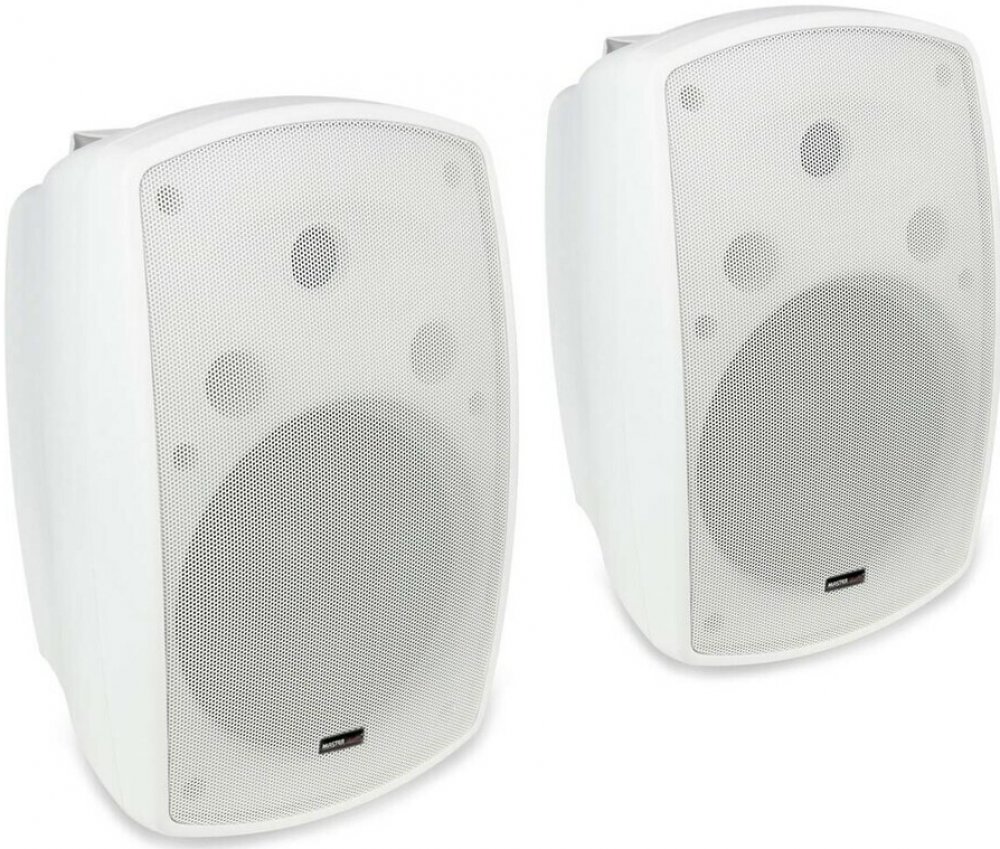 NB500TW Master Audio reprosoustava 17-5-1032 2 - pásmová reproduktorová soustava pro 100V rozvody s možností nízkoimpedančního 8ohm zapojení s moderním designem pro ozvučení interiérů i exteriérů (IP65). Nastavitelný příkon 16/8/4/2W pro 100V a 30W pro 8ohm. Tuhá a odolná ozvučnice z ABS plastu je osazena 5,25" subwooferem a výškovým reproduktorem. Soustava obsahuje otočný držák pro uchycení na zeď s možností natočení 180° horizontálně a 60° vertikálně. Cena za pár.