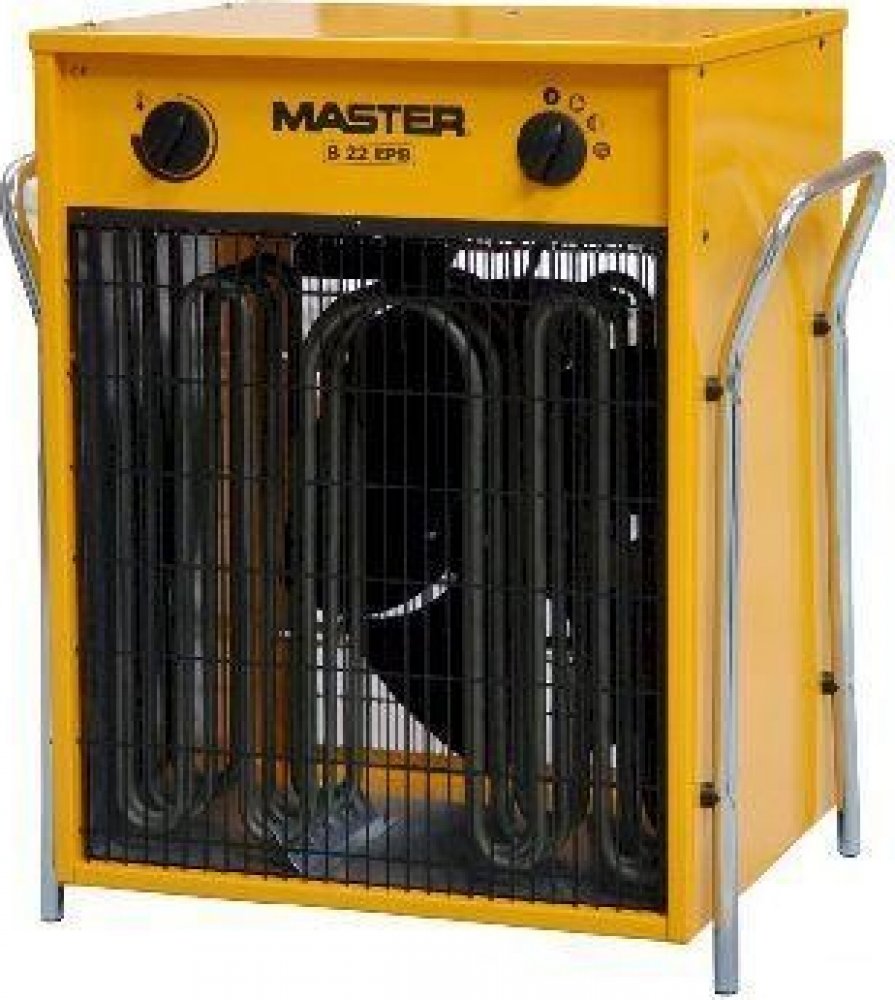 Elektrické topidlo Master B22 EPB je topení se středním tepelným výkonem 22 kW. Topení Master B 22 EPB je určeno pro 24hodinový provoz a je vybaveno orientačním termostatem pro udržování nastavené teploty ve vyhřívaném prostoru. Elektrický přímotop Master B22 EPB je napájen elektrickým napětím 400 V/50 Hz, ze zásuvky dle České normy pětikolík 32 Ampér. Topidlo B 22 EPB nespotřebovává kyslík a neprodukuje zplodiny a tím není nutné odvětrávání vytápěného prostoru. Topení Master B22EPB má téměř 100% účinnost. Konstrukce topidla je kovová, provozovat lze topidlo ve třech režimech: 1. jen jako ventilátor s průtokem vzduchu 2400 (m3/h), 2. jako topidlo s výkonem 11 kW, jako topidlo s výkonem 22kW. potřebné jištění pro topidlo Master B22EPB je 32 Ampér. Topné spirály jsou vícevrstvé nerezové a nikdy se za provozu nerozpálí do červena Topení je vybaveno pojistkou proti přehřátí a automatickým resetem. Elektrické krytí topidla je IP24 (určeno pro vnitřní použití). Topidlo je kompaktních rozměrů 350 x 540 x 590 mm a s váhou 20 Kg je snadno přenositelné jedním pracovníkem díky madlům po stranách topidla. Topení Master B22EPB je vybaveno zásuvkou, každý uživatel si musí dokoupit prodlužovací kabel s délkou a průřezem vodiče dle vlastní potřeby. Údržba je velice jednoduchá a spočívá jen v udržování topných spirál v čistotě jejich vyfoukáním. Nevýhodou je nutnost zajištění dostatečného jištění pro topidlo. Využití topidla ve velmi široké: stavby, obchody, dílny, průmyslové provozy a všude tam kde je dostatečný příkon a potřeba čistého teplého bez zplodin. ELEKTRICKÁ TOPIDLA JSOU URČENA PRO DLOUHODOBÝ PROVOZ! NIKDY NEVYHŘEJÍ PROSTOR RYCHLE A NIKDY Z NICH NEPŮJDE HORKÝ VZDUCH S TEPLOTOU STOVKY STUPŇŮ CELSIA, ALE PŘESNĚ TOLIK TEPELNÉHO VÝKONU KOLIK JE UVEDENO NA ŠTÍTKU K DOSAŽENÍ POTŘEBNÉ TEPLOTY V PROSTORU MUSÍ VZDUCH PROJÍT PŘES SPIRÁLY TOPIDLA NĚKOLIKRÁT