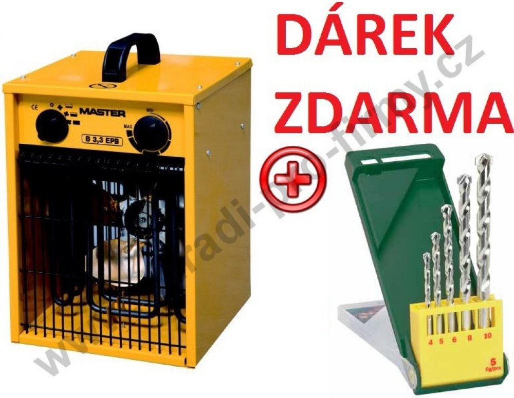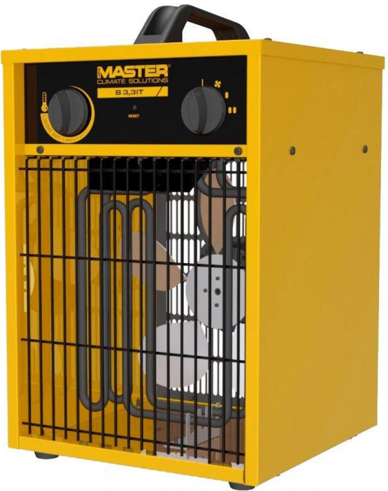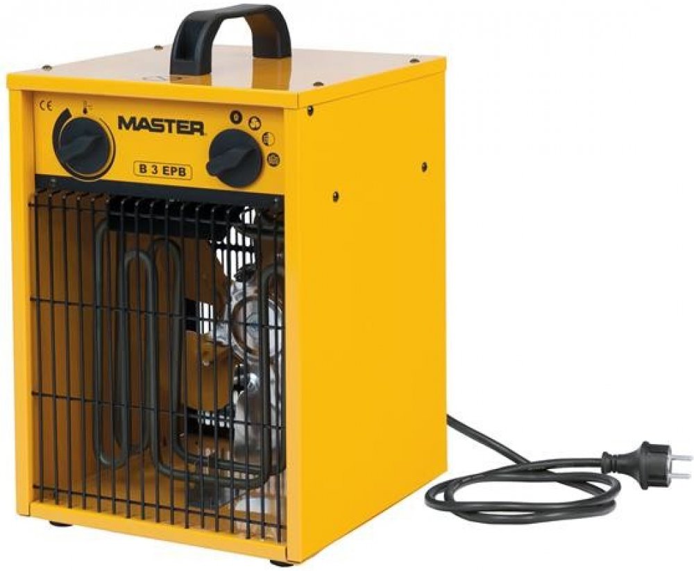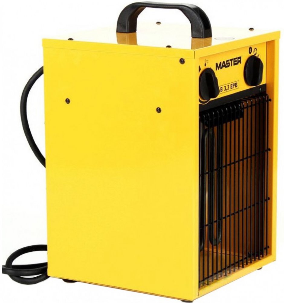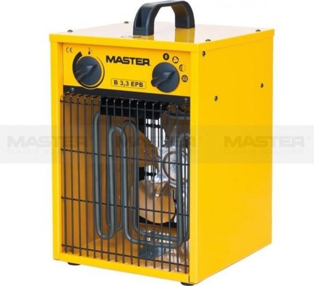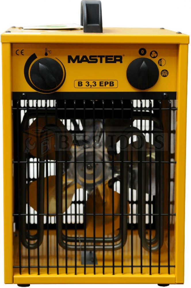 Elektrický přímotop Master B3,3 EPB je jedno z nejprodávanějších elektrických topidel vůbec. Master B3,3 EPB o výkonu 3,3 kW je nejsilnější elektrický ohřívač s připojením na běžnou zásuvku 230 V. Konstrukce topidla má díky robustnosti velmi dlouhou životnost. Topné prvky ohřívače jsou z nerezové oceli, motor je vybaven tepelnou ochranou a termostatem proti přehřátí.