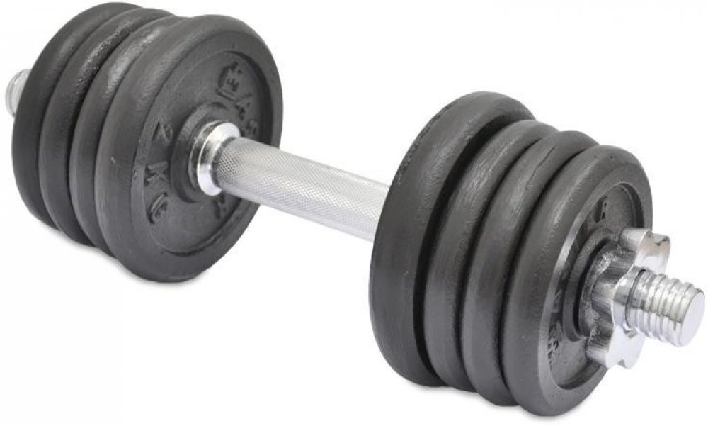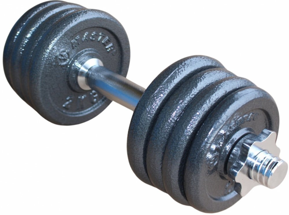 Nakládací činka MASTER 15 kg - jednoruční činka je vhodná pro domácí posilování s možností změny hmotnosti a využití pro různé věkové a kondiční skupiny. Činka se skládá z: