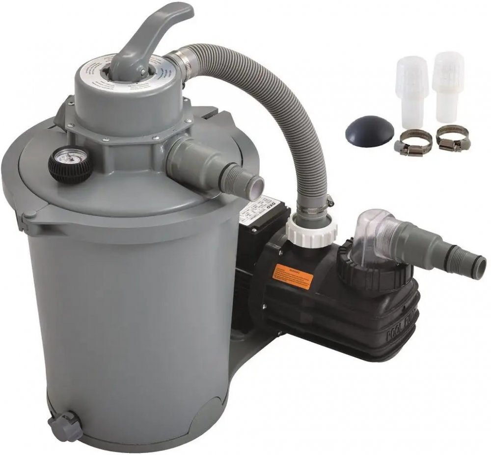 Bazénová písková filtrace pro nadzemní bazény s průtokem 6.813 litrů za hodinu. Šesticestný ventil pro jednoduché nastavení optimální filtrace. Doporučeno pro bazény s objemem do 40.000 litrů. Technická data:hadice 32 mm na připojení k bazénu jsou součástí balenínapájení AC 220-240 Vpříkon čerpadla 350 Wprůtok 6.813 litrů za hodinuvnitřní průměr připojovacích hadic bazén - filtrace 32 mmcertifikát...