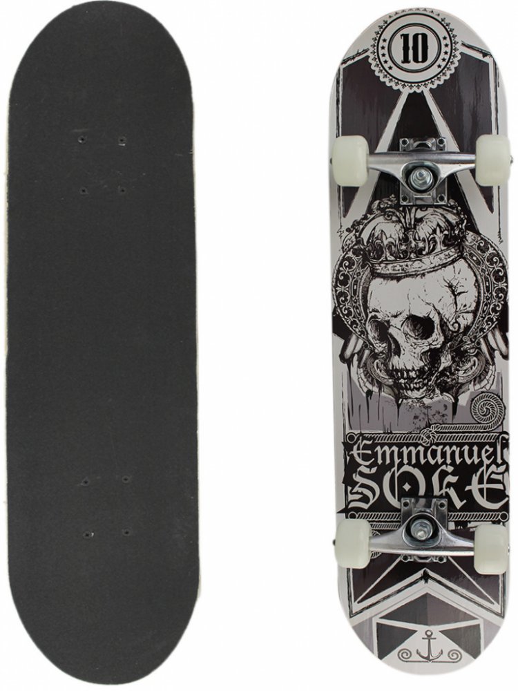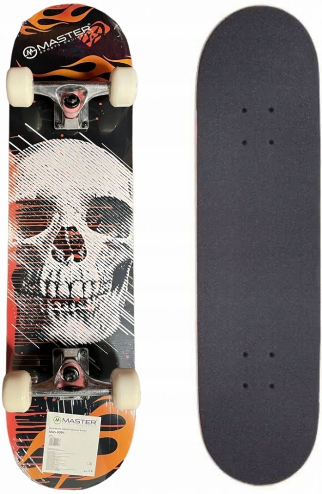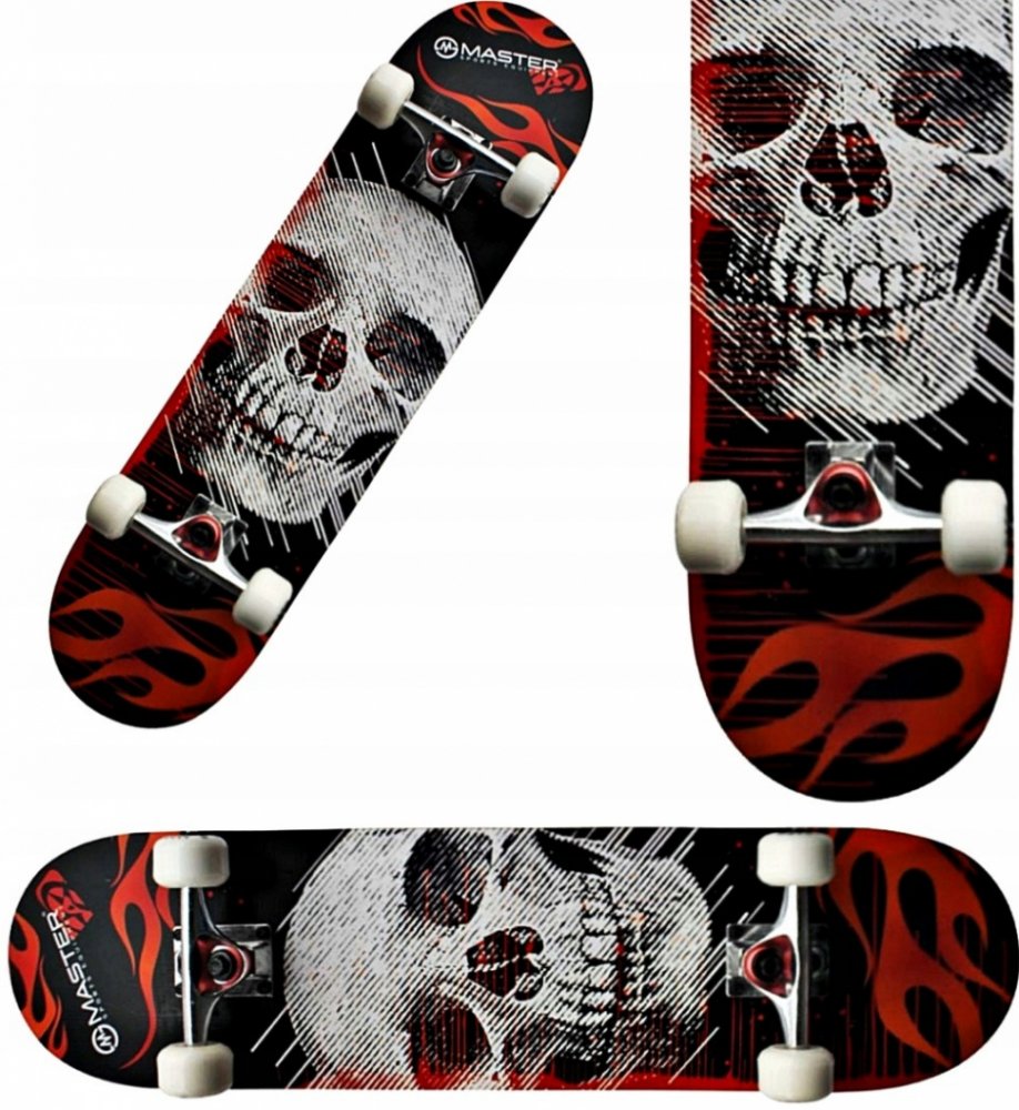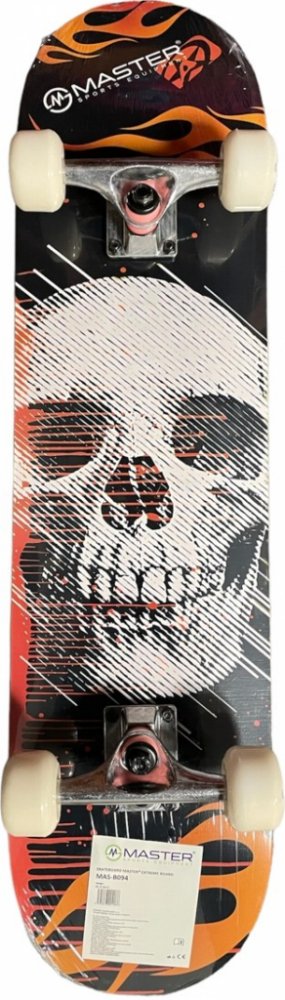 Skateboard MASTER Extreme Board Skateboard MASTER Extreme Board je určen pro začínající skateboardisty přibližně od šesti let. Deska vyrobená z kvalitního devítivrstvého čínského javoru vám spolu s PU kolečky High rebound přinese maximální požitek z jízdy. Tento skateboard je vhodný pro jízdu jak do skateparku tak i do ulic. Originální grafický design zaujme každého jezdce. Technická data: