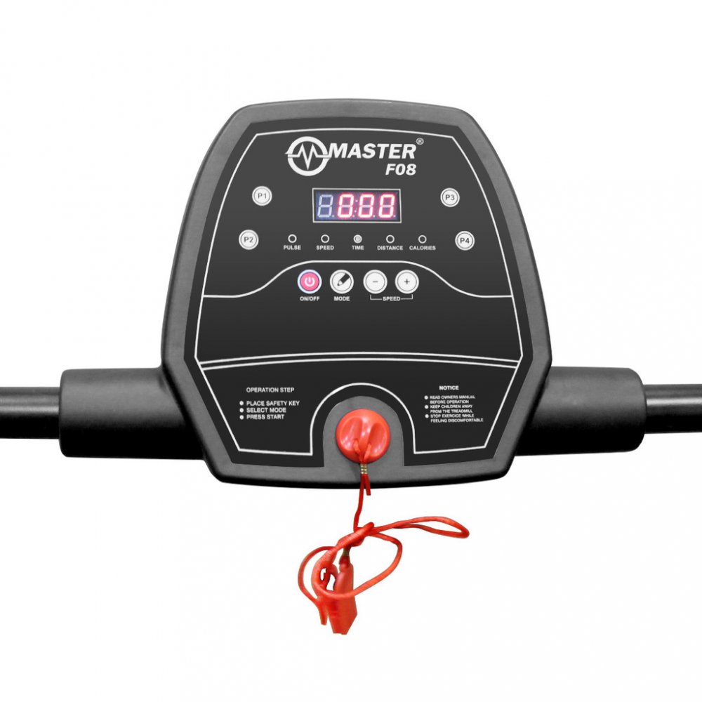 Motorový běžecký pás MASTER F-08 je moderní běžecký pás určený pro domácí použití. Stroj je vyroben z kvalitních materiálů a jednou z jeho hlavních předností je tichý chod motoru. Díky jednoduchému ovládání, třem polohám sklonu a maximální rychlosti 12 km/h je ideální pro začátečníky ale i pokročilejší uživatele. Pás je velmi snadné složit do vertikální polohy a poté jej můžete uskladnit prakticky kdekoliv.