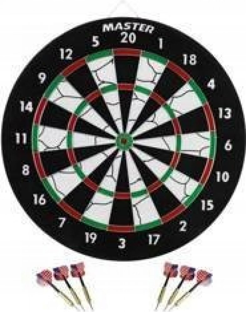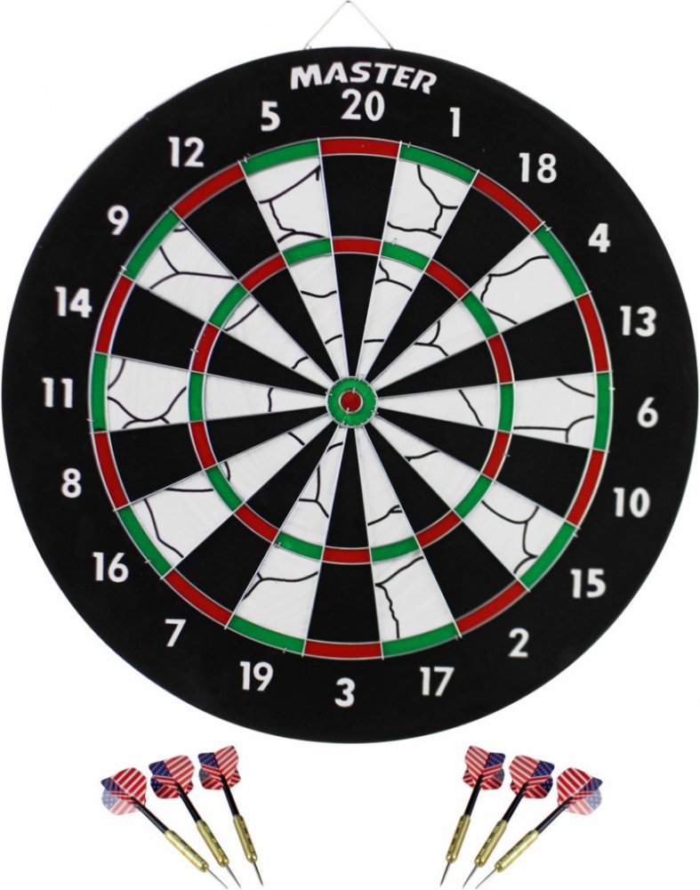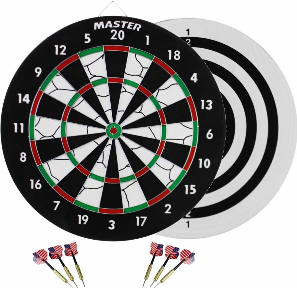 Oboustranný sisalový terč MASTER spolu se třemi šipkami. Šikovné řešení dvou typů terčů v jednom. Společně s terčem obdržíte tři kusy šipek 18 gr. šipek (ocel/mosaz). Technická data: