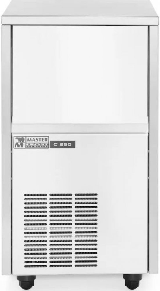 Spotřebič je určen k použití v barech, hospodách, kavárnách a restauracích. Robustní kryt z nerezové oceli AISI 304. Plastový interiér. Větrací otvory na přední straně krytu umožňují instalaci výrobníku ledu pod pultem. Spotřebič používá metodu stříkání k dokonalému vytvarování kostek pomocí šestihranného otvoru, který má větší chladicí povrch a zajišťuje delší dobu chlazení – a zároveň minimalizuje ředění nápojů. Inovativní způsob výměny tepla pomocí přídavného kondenzátoru – rekuperace tepla kompresoru používaná k odmrazování desky stříkání. Prodloužený výkon a životnost kompresoru. Efektivní provoz při okolní teplotě až 42 °C.Nízká spotřeba energie. Nastavení úrovně naplnění zásobníku ledu. Nastavitelné nožičky. Snadné čištění díky odnímatelným dílům. Včetně vstupních a výstupních hadic a odměrky na led. Chladivo: R454c. Denní výkon: 28 kg. Kapacita zásobníku na led: 12–13 kg. Rozměry: 400×460×(V)670 mm. Napájení/napětí: 295 W/230 V.Síť/hrubá hmotnost: 32/34 kg.