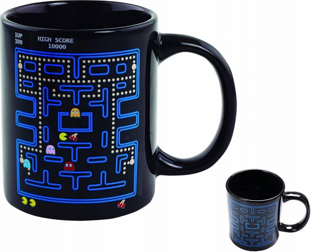 Kouzelný retro hrnek pro milovníky starých počítačů a her, jejichž lesk sice dávno pominul, ale nostalgie zůstala. Abyste ji vzkřísili a měli před očima obrazy z dávných let, stačí si pořídit náš hrnek a zalít ho vroucí vodou, aby vyšla v plné kráse všem dobře známá hra. Hráči starého data si dobře pamatují žlutého tvora, který požíral tečky a utíkal před dušemi, a když nastal správný okamžik, s chutí snědl i duše.