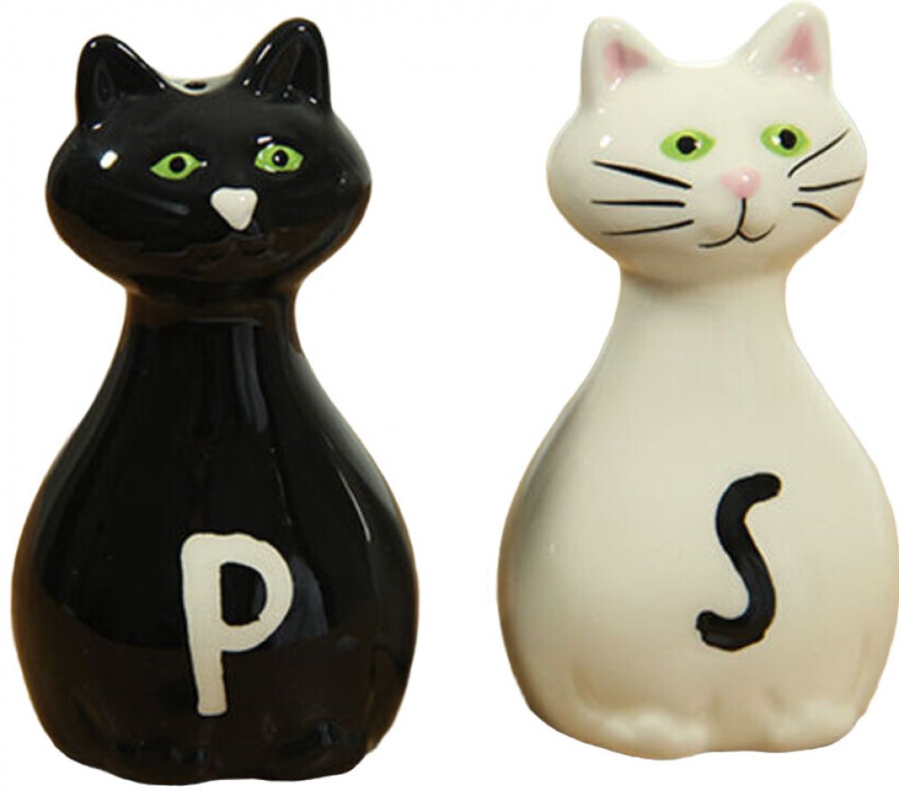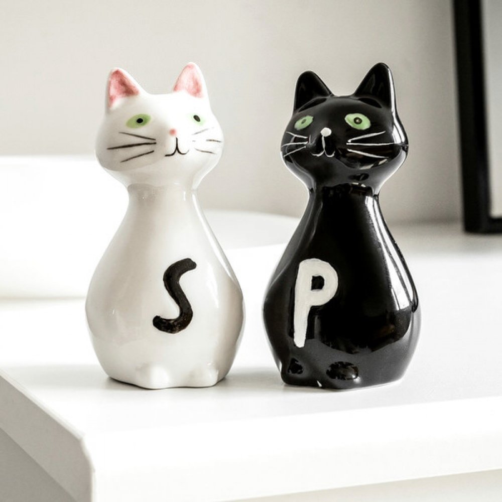 Roztomilé černé a bílé kočky na sůl a pepř, aby okořenily vaše jídlo a zpříjemnily váš den.