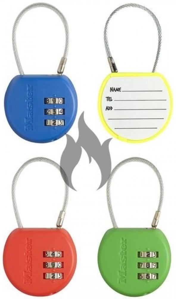 Set 4 ks visacích zámků Master Lock 4671EURDCOL o šířce 42 mm. Zámek je vyroben z lehkého ABS plastu. Patří do bezpečnostní třídy Master Lock™ 3. Zabezpečte si svůj majetek pomocí zámku, jehož třmen dlouhý 44 mm je z flexibilního ocelového lanka a má průměr 2 mm. Obsahuje nastavitelnou 3-cifernou kombinaci zámku. Jeho součástí je i adresní štítek pro snadnou identifikaci. Zámky jsou ve 4 barevných...