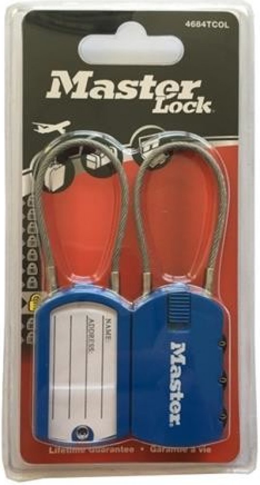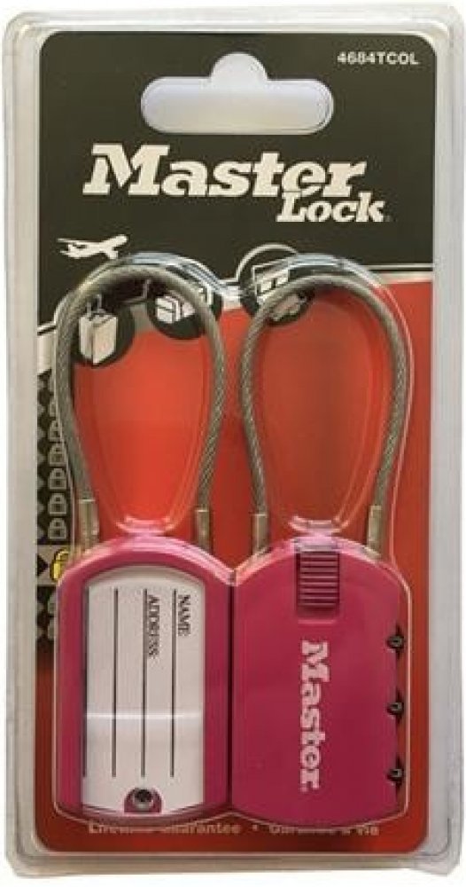 Set 2 ks visacích zámků o šířce 30 mm s adresním štítkem pro snadnou identifikaci. Jeho zinkové tělo je odolné proti poškození. Třmen je z flexibilního ocelového lanka o průměru 2 mm a má délku 10 mm. Zámek má nastavitelnou 3-cifernou kombinaci zámku.