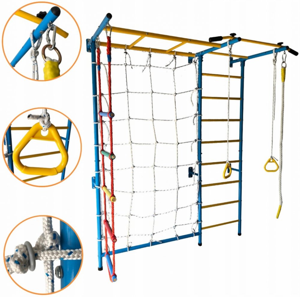 Sada je uzpůsobena pro montáž na stěnu, součástí jsou všechny potřebné šrouby a hmoždinky. Dětský žebřík lze umístit ke zdi nebo do rohu dětského pokoje. Stěny, na které bude sestava namontována, by měly být pevné (výrobek není vhodný pro montáž na sádrokarton).