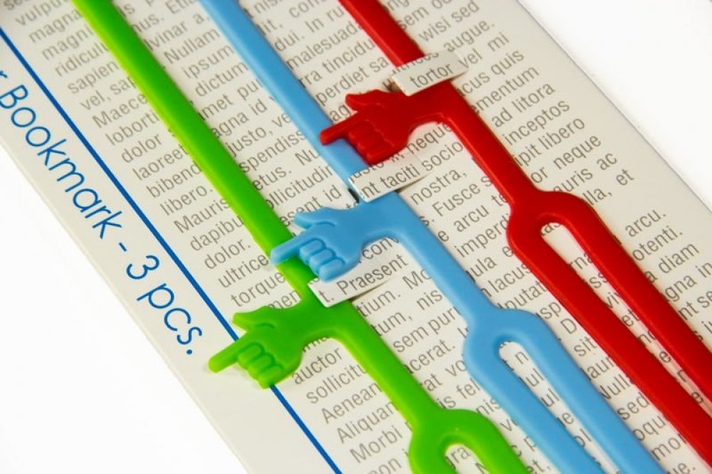 Sada tří originálních záložek Finger Bookmark ve třech různých barvách - červená, modrá, zelená.