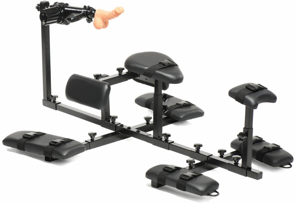 Spoutejte svého partnera či partnerku a potrestejte ho intenzivním pronikáním! Tento doplněk spojuje šukací stroj a pouta, ze kterých nebude úniku. Pevná ocelová konstrukce přináší stabilitu a zajišťuje správné naklonění kyčlí pro dokonalé zacílení na citlivá místa. Využijte 10 nylonových popruhů ke spoutání a na vyšpulený zadek mu/ji nejprve dopřejte pořádný výprask.