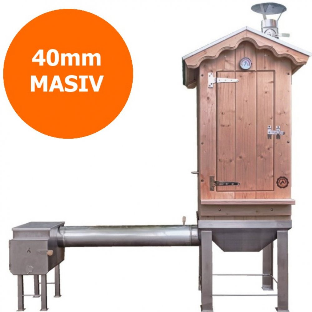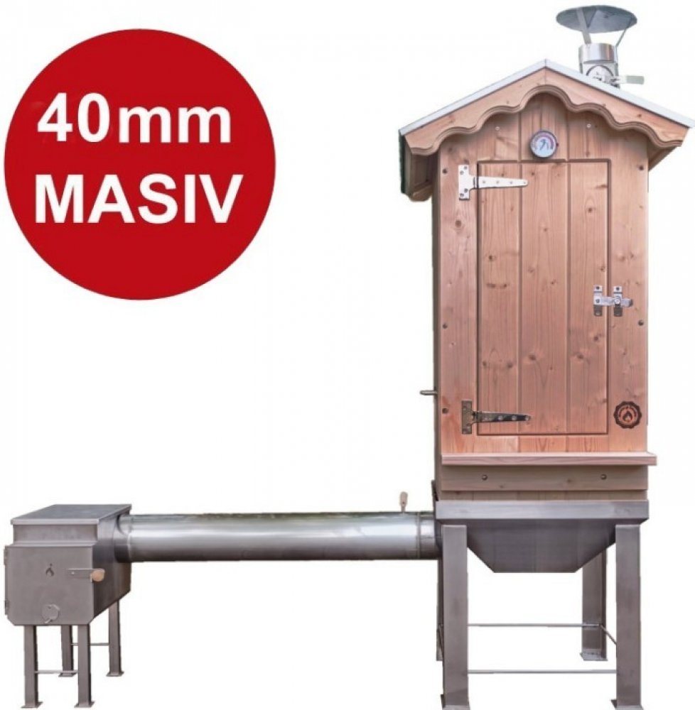Dřevěná udírna se zesílenou stěnou vč. masivního bočního topeniště ze 3 mm nerezové oceliKaždý kus kovu je zde z nerezu!Použitý materiál na výrobu je masivní smrkové dřevo o síle 40 mm s perodrážkouSpojení palubek dvojitou perodrážkou zajistí vynikající těsnost skříně udírnyVýrazně lepší izolační vlastnosti než klasické 19 mm udírnyDokonalá pro uzení studeným kouřem