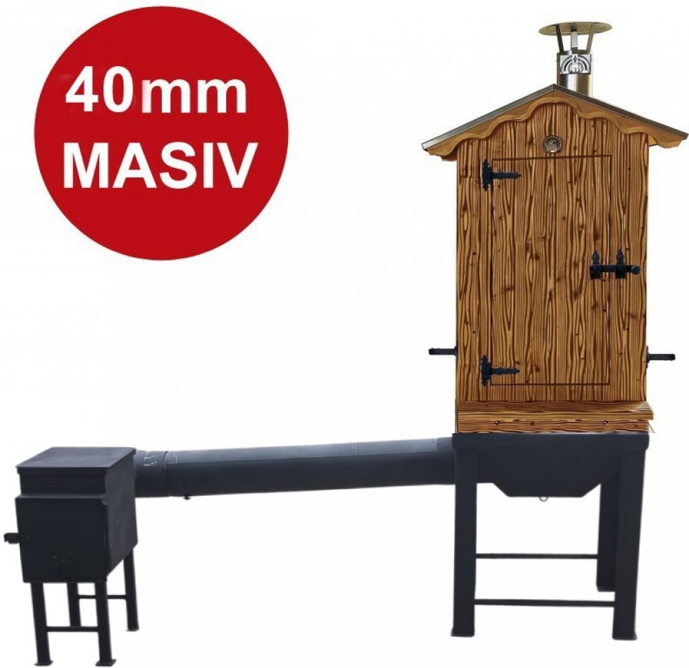 Dřevěná udírna vč. masivního bočního topeniště s 9 možnými pozicemi připojení k udírně