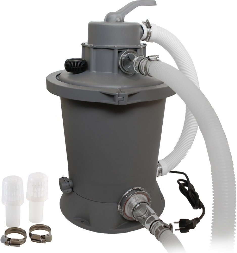 Bazénová písková filtrace pro nadzemní bazény s průtokem 3.785 litrů za hodinu. Šesticestný ventil pro jednoduché nastavení optimální filtrace. Doporučeno pro bazény s objemem do 24.000 litrů. Technická data: