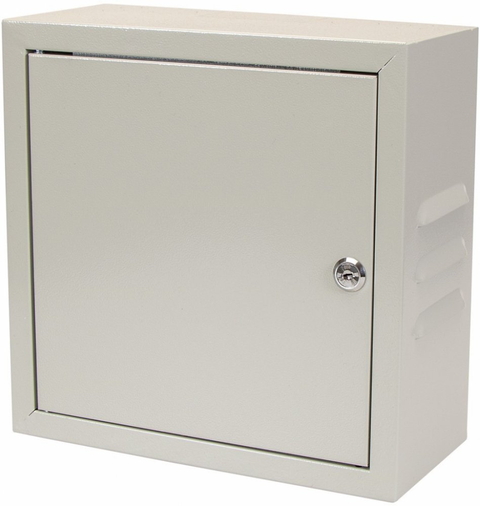 Celokovová uzamykatelná rozvodná skříň pro vnitřní použití v bílé barvě s rozměry 300x300x140mm disponuje několika vylamovacími otvory na horní a spodní straně. Uchycení na zeď 4 montážními otvory na zadní straně skříně. Skříň je vyrobena z pozinkovaného plechu s lesklou lakovou úpravou. Po obou stranách skřínš jsou ventilační otvory.