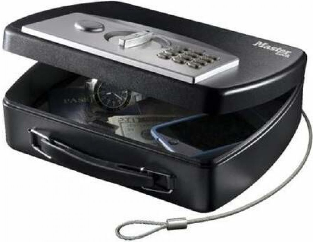 - Uzamykatelný cestovní box na cennosti Odolná ocelová konstrukce 2 nastavitelné digitální kombinace s nulovacím klíčem napájení 4x alkalické AA baterie (nejsou součástí balení) 2 klíče pro zadávání různých kódů Integrované ocelové lanko o průměru 5mm v délce 880mm pro uchycení k pevnému bodu Praktické držadlo