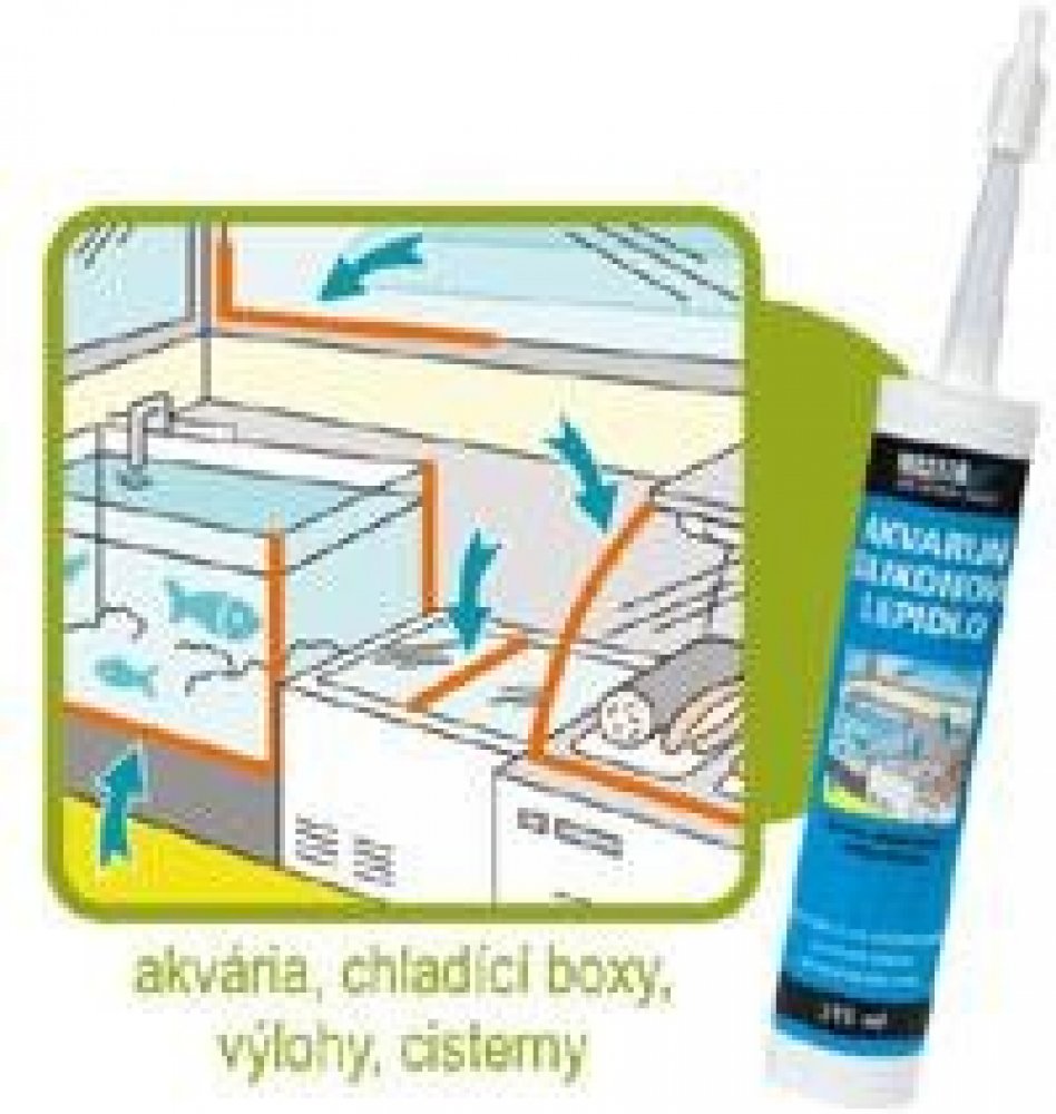 Akvarijní silikonové lepidlo MASTERsil je jednosložkový 100% acetátový silikon bez rozpouštědel a parafínů. V průběhu vytvrzování s typickou octovou vůní. Odolává UV záření, řasám a mořské vodě. Vysoká přilnavost na sklo.