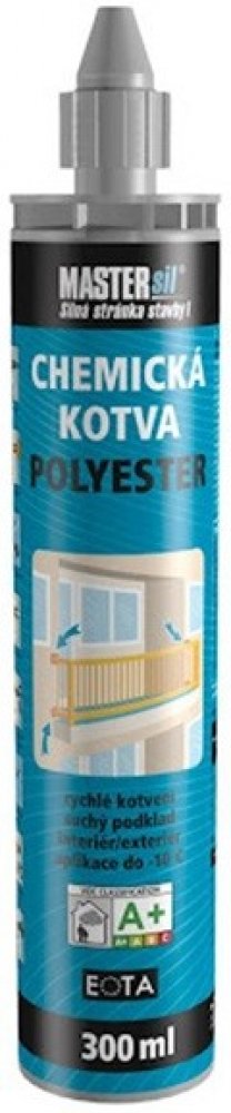 MASTERsil Chemická kotva POLYESTER je dvousložková chemická malta na bázi polyesteru bez obsahu styrenu, což zajišťuje minimální zápach a bezpečnější práci i v uzavřených prostorách. Díky tomu, že nevyvíjí rozpěrné síly, je šetrná k podkladu a vhodná pro kotvení do materiálů, kde by mechanické rozpínání mohlo způsobit poškození. Vyznačuje se vysokou mechanickou pevností a spolehlivým výkonem i při náročném zatížení. Používá se pro kotvení závitových tyčí, objímek, armovacích prutů a dalších kovových profilů do většiny plných a dutých stavebních materiálů, jako je beton, cihla či přírodní kámen (u dutých nutné použít plastové sítko). Je ideální pro profesionální i domácí aplikace, kde je požadována dlouhodobá pevnost a spolehlivost spoje.