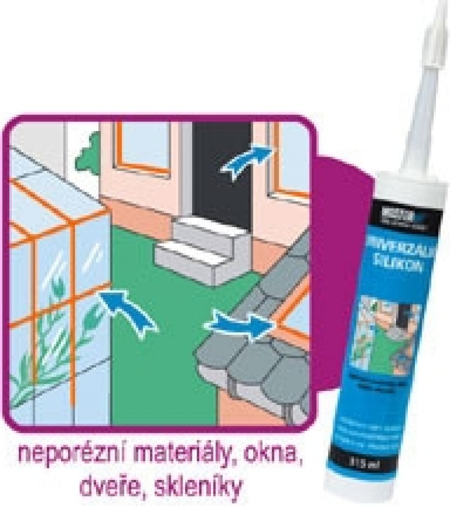 Jednosložkový acetátový 100% silikonový tmel s protiplísňovou přísadou, bez rozpouštědel a parafínů. Vulkanizuje vzdušnou vlhkostí a vytváří typickou octovou vůni. Odolává UV záření, má minimální smrštění, je barevně stálý, nelze přetírat.