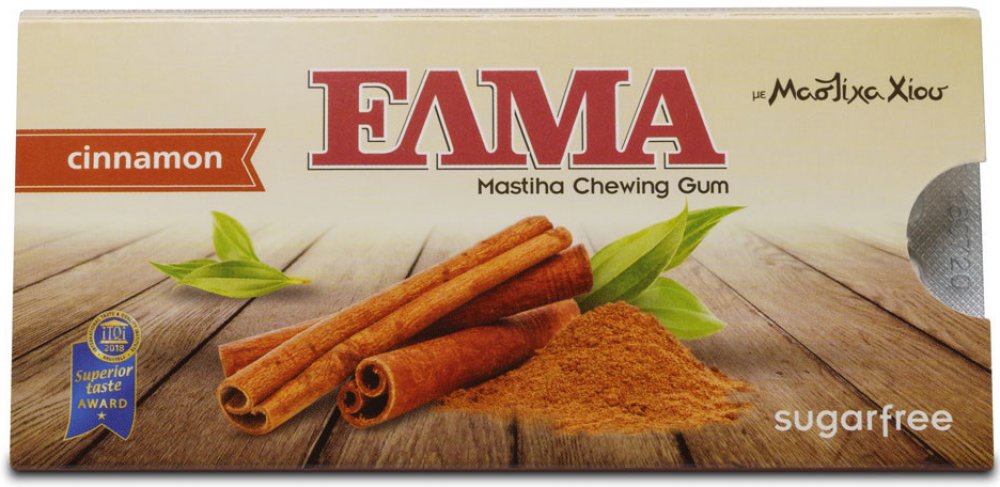 Sladidla: xylitol, sorbitol, mannitol, žvýkačková báze (antioxidant: tocopherol), Chioská masticha (mastichový guma 2,5%), stabilizátor: glycerin, aroma: skořice, zahušťovadlo: arabská guma, barvivo: dioxid titaničitý, leštící látka: karnaubský vosk. Může obsahovat stopy sójy. Neobsahuje cukr.
