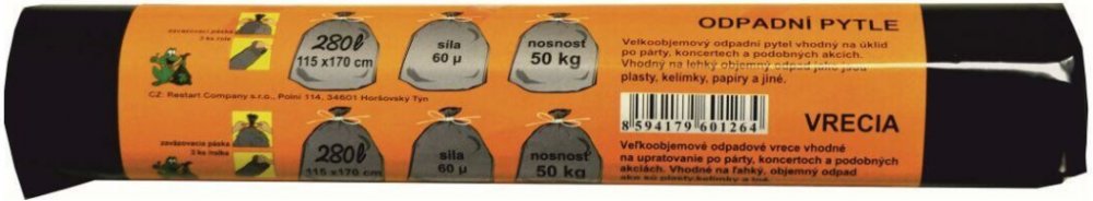 Pytle na odpadky 280 l (3 ks) 115 x 170 cm, ČER, 60µ, SILNÉ.