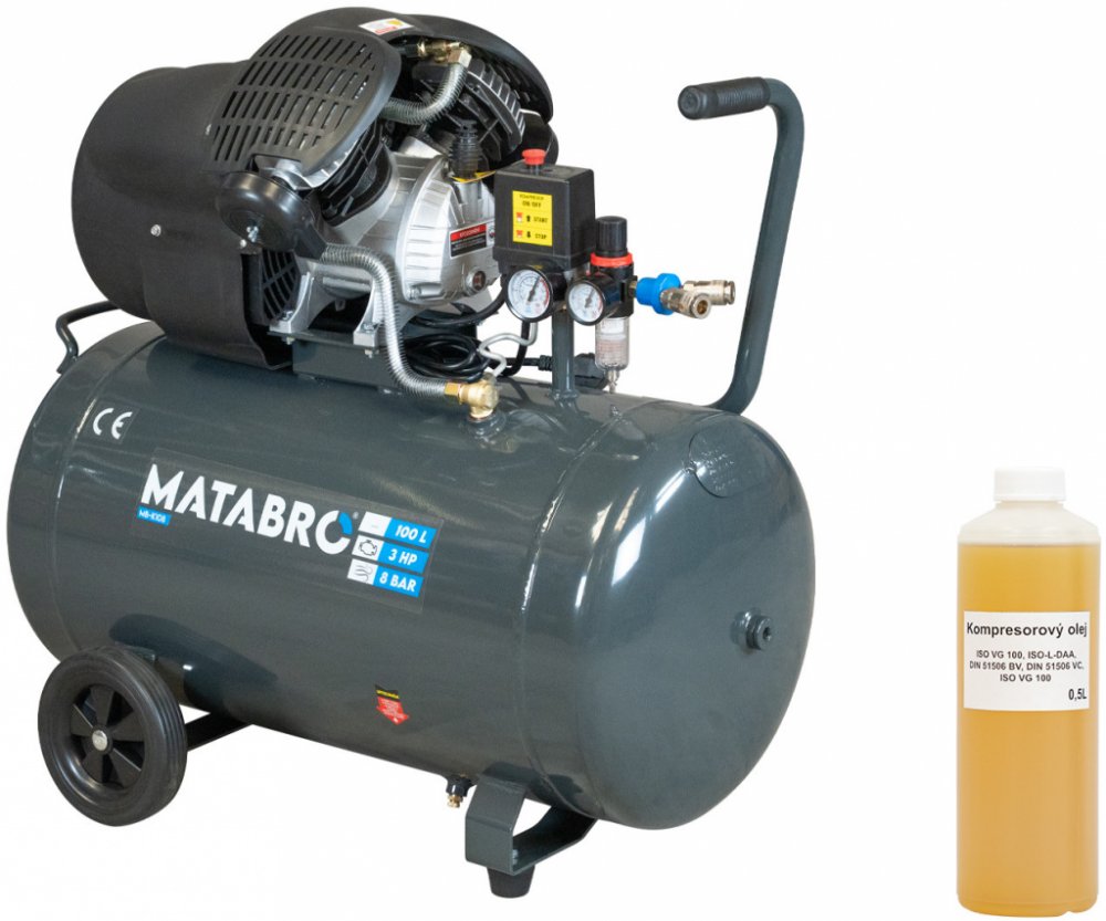 Kompletní technické specifikace: Model má pracovní tlak 8 BARŮ, jmenovitý výkon motoru 2,2 KW / 3 HP a maximální výkon motoru 3,5 KW / 4,7 HP. Objem nádrže je 100 litrů. Napájecí napětí je 230 V při frekvenci 50 Hz. Rozměry kompresoru jsou 860 x 450 x 790 mm a hmotnost činí 50 kg.