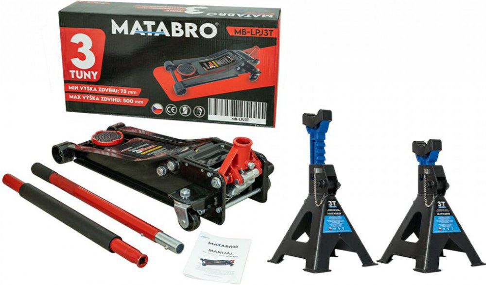Matabro MB-LPJ3T Nízkoprofilový hydraulický zvedák s pojezdem s podpěrami MB-JS3T 3 t