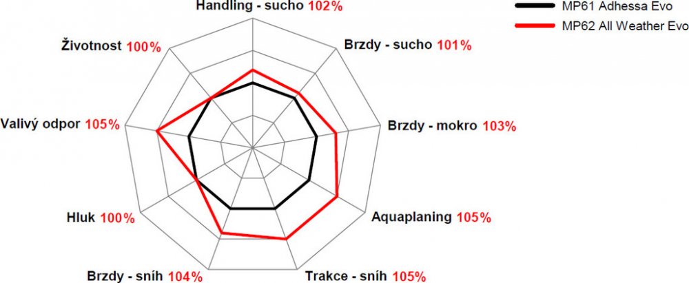 Matador MP62 All Weather Evo je celoroční pneumatika, která zajišťuje spolehlivou stabilitu a bezpečnost za všech povětrnostních podmínek. Díky optimalizované tuhosti běhounu dokáže efektivně přenášet síly na vozovku, což výrazně zlepšuje ovladatelnost a přilnavost zejména při průjezdu zatáčkami na suchém povrchu. Kombinace moderní směsi a inovativního dezénu umožňuje vyvážený výkon v různých ročn...