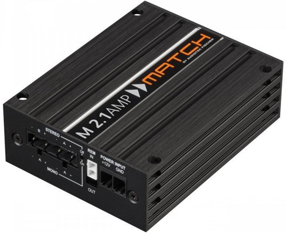Díky možnosti přepínání mezi mono a stereo provozem je nový zesilovač M 2.1AMP opravdu multifunkční nástroj. V režimu mono je ideální k pohonu výkonných subwooferů s minimální impedancí 2 ohmů, zatímco v režimu stereo se jedná o perfektní řešení k pohonu výkonných předních nebo zadních reproduktorových systémů. Díky širokému frekvenčnímu pásmu (Hi-Res Audio) platí Match M 2.1AMP za opravdu špičkové zařízení, které hravě splní požadavky i těch nejnáročnějších uživatelů.