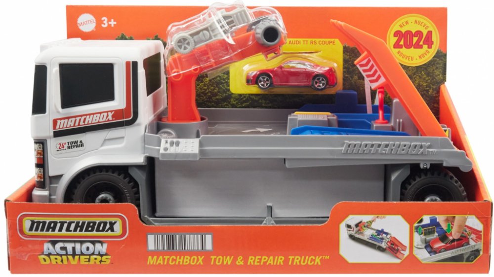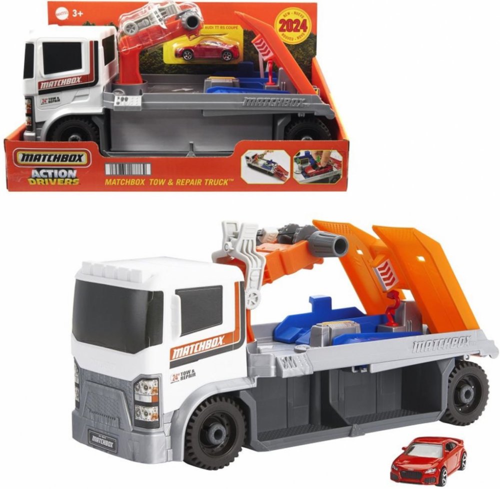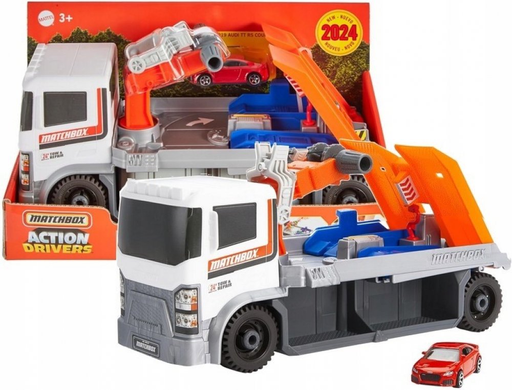 Jejda! Máme poruchu! Naštěstí přichází na pomoc tato unikátní odtahovka s dílnou Matchbox Action Drivers Real Adventures. Připevněte přiložené autíčko Audi TT RS Coupe v měřítku 1:64 na tažné zařízení a otáčením kliky na jeřábu umístěte auto na diagnostické zařízení. Motor zkontrolován? Skvělé, teď postavte auto na výtah, abyste se podívali na podvozek. Po dokončení kontroly nahustěte pneumatiky a vyrazte vstříc dalšímu dobrodružství.