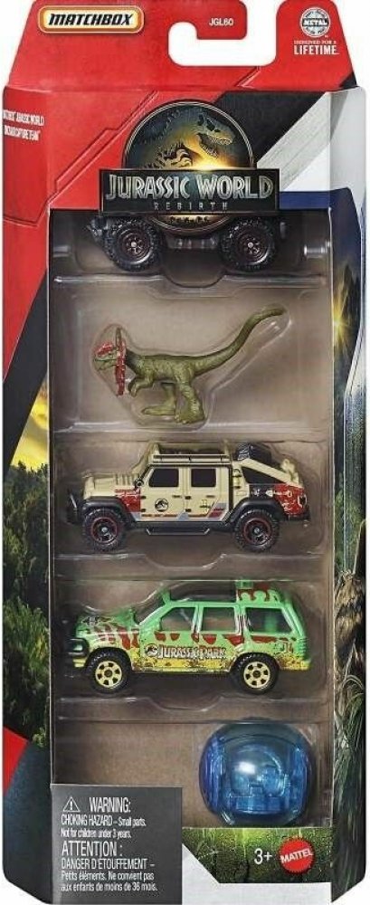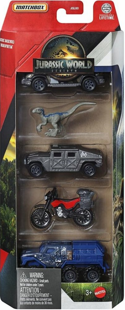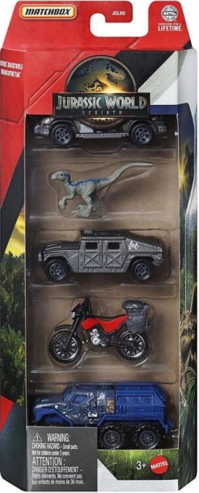 Zažijte filmové dobrodružství s Matchbox Jurský svět! Každá sada obsahuje 4 angličáky v měřítku 1:64 inspirované filmy a jednoho malého dinosaura pro ještě větší zábavu při hře. Pro děti a sběratele od 3 let.
