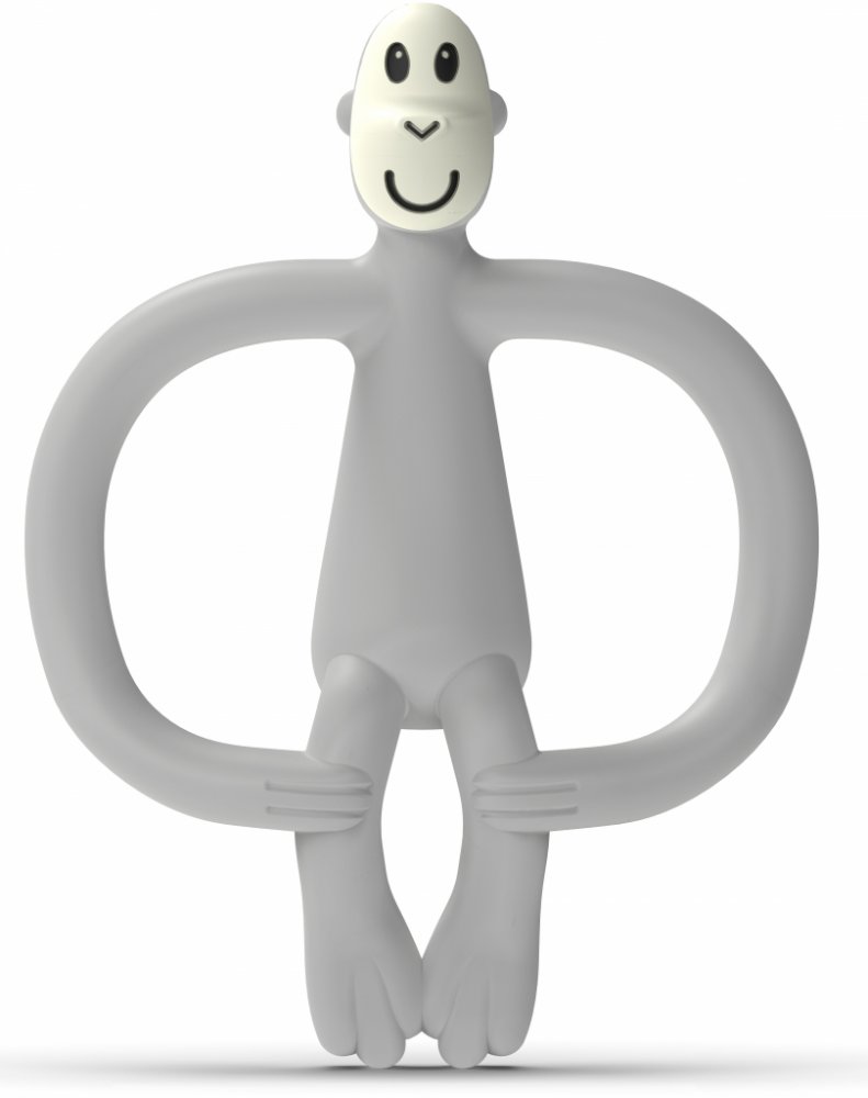 Monkey Teether - COOL GREY Zábavné a pružné, vaše děti mohou žvýkat podle libosti a zároveň si uklidnit bolavé dásně. Ergonomický design pomáhá rozvíjet jemnou motoriku a jeho nízká hmotnost je ideální pro malé ručičky. Antimikrobiální ochrana BioCote® pomáhá udržet bakterie na uzdě, zatímco strukturované hrbolky dostanou produkty na prořezávání zoubků přímo ke zdroji bolesti, aniž by bylo třeba používat prsty. Kousátko Matchstick Monkey je zábavné silikonové kousátko s měkkou texturou, které poskytuje úlevu bolavým dásním. Měkké hrbolky na zadní straně hlavičky kousátka, které jsou ideální pro aplikaci přípravků na prořezávání zubů na jinak těžko přístupné stoličky. Přidaná antimikrobiální ochrana BioCote® snižuje výskyt mikrobů na povrchu výrobku, takže je mnohem čistší a hygieničtějšá než jakákoli jiná kousátka. Ergonomický design pomáhá dítěti rozvíjet motorické dovednosti již od útlého věku. Je lehké a snadno uchopitelné pro malé ručičky. Lze použít jako přípravný kartáček na trénování čištění zubů. Specifické vlastnosti: - potravinářský silikon schválený FDA - bez BPA, netoxický a šetrný k životnímu prostředí - lze mýt v myčce nádobí a používat v chladničce - vhodné pro sterilizaci párou a studenou vodou - dodává se v opakovaně použitelném obalu pro skladování - výška: 11 cm