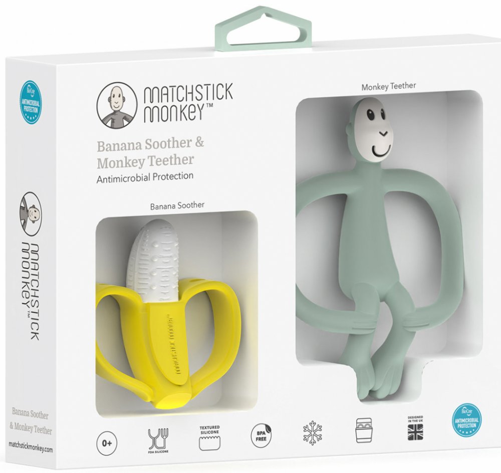 Matchstick Monkey dárková sada kousátek Banán a Opice Mint Green